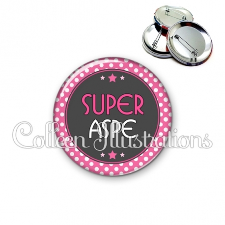 Image imprimée en haute résolution sur papier de qualité, protégée d'un film plastique, et sertie sur une coque et épingle métallique.