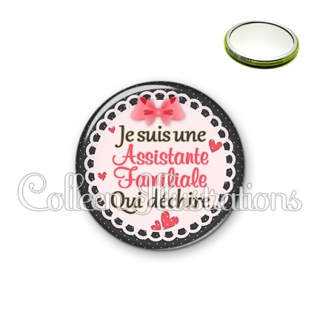 Miroir simple avec dos métallique décoré d'une image fantaisie et texte.