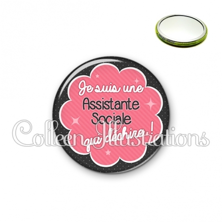 Miroir simple avec dos métallique décoré d'une image fantaisie et texte.