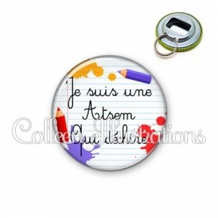Image imprimée en haute résolution sur papier de qualité, protégée d'un film plastique, et sertie sur une coque métallique avec dos décapsuleur.