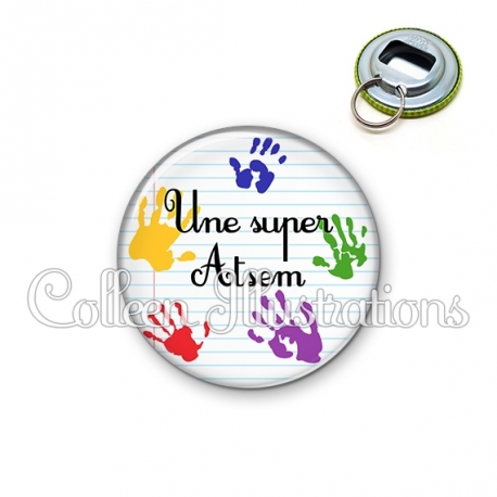 Image imprimée en haute résolution sur papier de qualité, protégée d'un film plastique, et sertie sur une coque métallique avec dos décapsuleur.