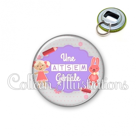 Image imprimée en haute résolution sur papier de qualité, protégée d'un film plastique, et sertie sur une coque métallique avec dos décapsuleur.