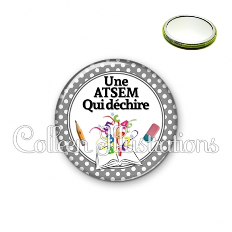Miroir simple avec dos métallique décoré d'une image fantaisie et texte.