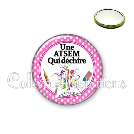 Miroir simple avec dos métallique décoré d'une image fantaisie et texte.