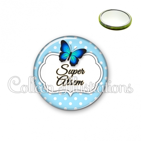 Miroir simple avec dos métallique décoré d'une image fantaisie et texte.