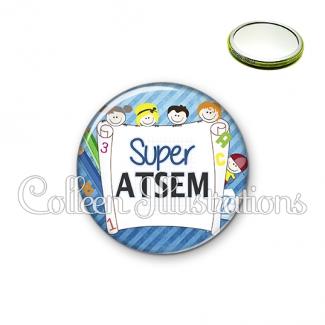 Miroir simple avec dos métallique décoré d'une image fantaisie et texte.
