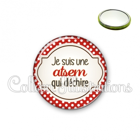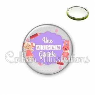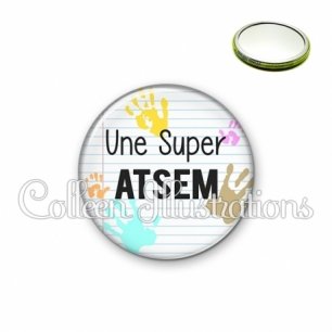 Miroir simple avec dos métallique décoré d'une image fantaisie et texte.