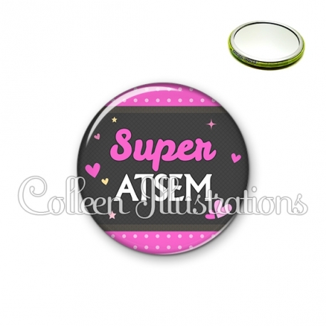 Miroir simple avec dos métallique décoré d'une image fantaisie et texte.