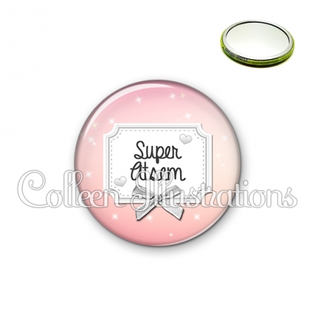 Miroir simple avec dos métallique décoré d'une image fantaisie et texte.