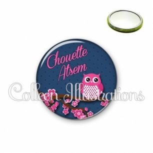 Miroir simple avec dos métallique décoré d'une image fantaisie et texte.