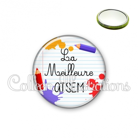Miroir simple avec dos métallique décoré d'une image fantaisie et texte.