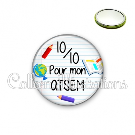 Miroir simple avec dos métallique décoré d'une image fantaisie et texte.