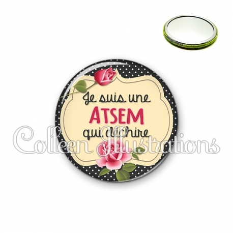 Miroir simple avec dos métallique décoré d'une image fantaisie et texte.