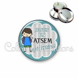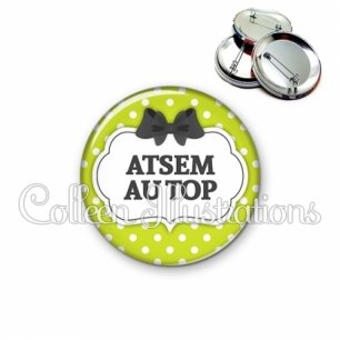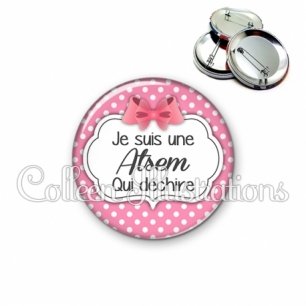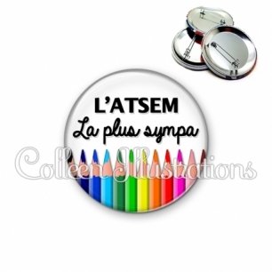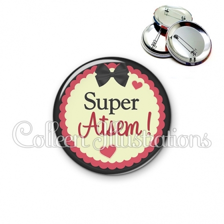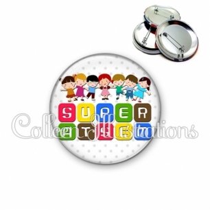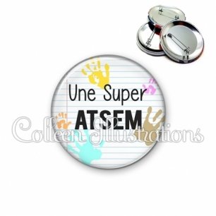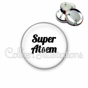 Image imprimée en haute résolution sur papier de qualité, protégée d'un film plastique, et sertie sur une coque et épingle métallique.