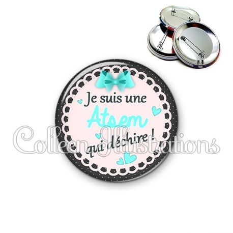 Image imprimée en haute résolution sur papier de qualité, protégée d'un film plastique, et sertie sur une coque et épingle métallique.