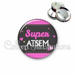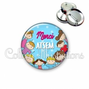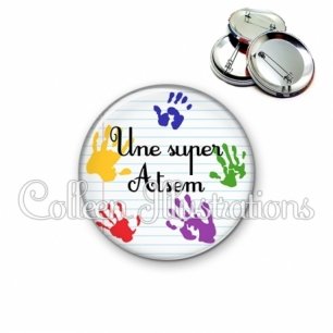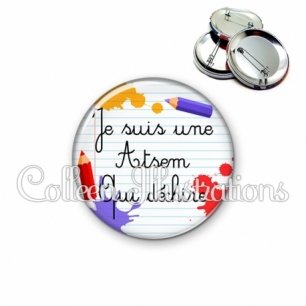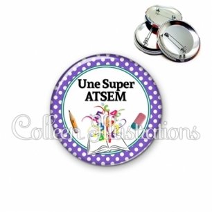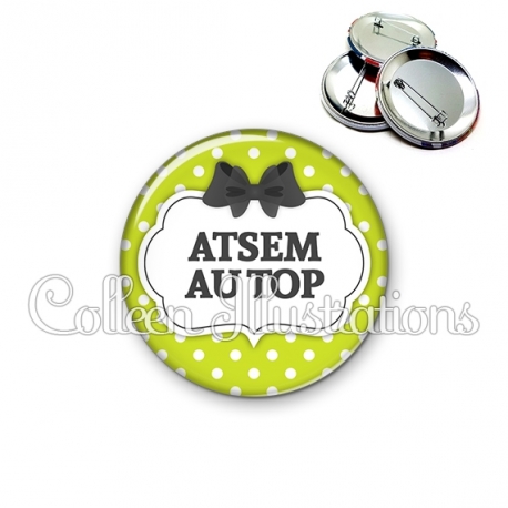 Image imprimée en haute résolution sur papier de qualité, protégée d'un film plastique, et sertie sur une coque et épingle métallique.