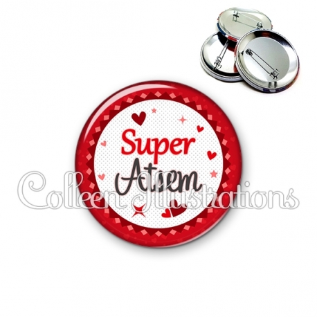 Image imprimée en haute résolution sur papier de qualité, protégée d'un film plastique, et sertie sur une coque et épingle métallique.