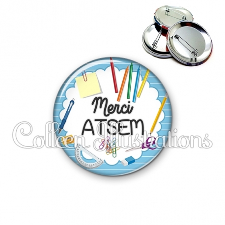 Image imprimée en haute résolution sur papier de qualité, protégée d'un film plastique, et sertie sur une coque et épingle métallique.