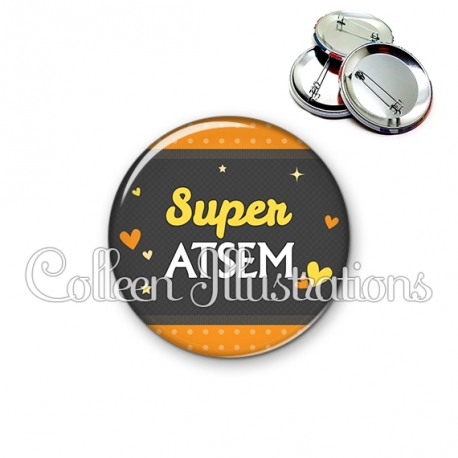Image imprimée en haute résolution sur papier de qualité, protégée d'un film plastique, et sertie sur une coque et épingle métallique.