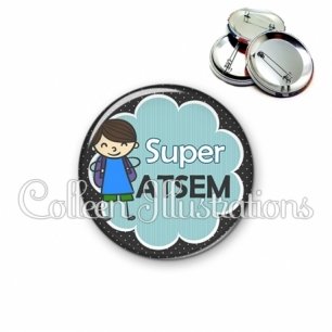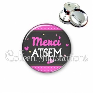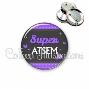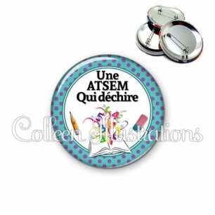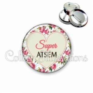 Image imprimée en haute résolution sur papier de qualité, protégée d'un film plastique, et sertie sur une coque et épingle métallique.
