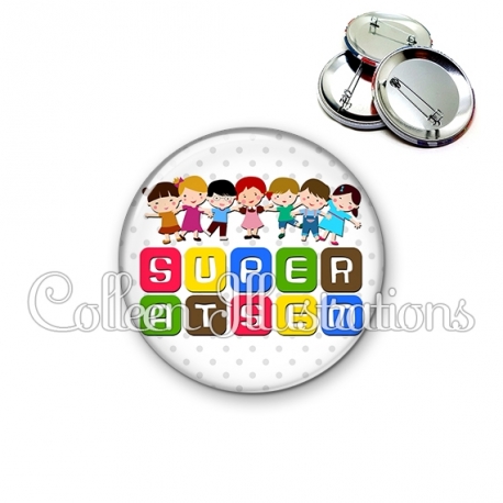 Image imprimée en haute résolution sur papier de qualité, protégée d'un film plastique, et sertie sur une coque et épingle métallique.