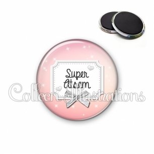 Magnet métallique avec image fantaisie et texte.