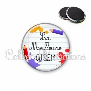 Image imprimée en haute résolution sur papier de qualité, protégée d'un film plastique, et sertie sur une coque métallique avec dos aimanté.