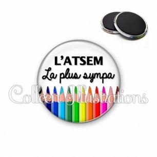 Image imprimée en haute résolution sur papier de qualité, protégée d'un film plastique, et sertie sur une coque métallique avec dos aimanté.