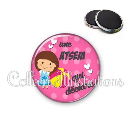 Image imprimée en haute résolution sur papier de qualité, protégée d'un film plastique, et sertie sur une coque métallique avec dos aimanté.