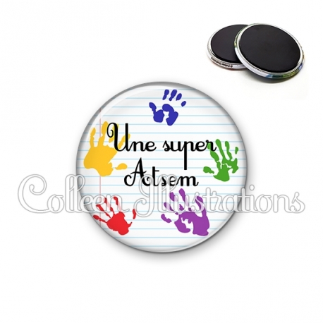 Image imprimée en haute résolution sur papier de qualité, protégée d'un film plastique, et sertie sur une coque métallique avec dos aimanté.