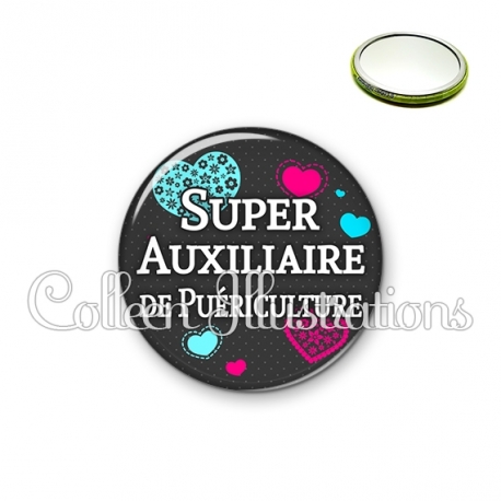Miroir simple avec dos métallique décoré d'une image fantaisie et texte.