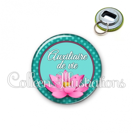Image imprimée en haute résolution sur papier de qualité, protégée d'un film plastique, et sertie sur une coque métallique avec dos décapsuleur.