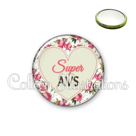 Miroir simple avec dos métallique décoré d'une image fantaisie et texte.