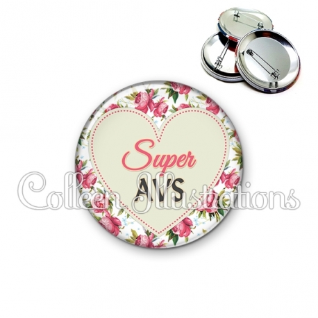 Image imprimée en haute résolution sur papier de qualité, protégée d'un film plastique, et sertie sur une coque et épingle métallique.