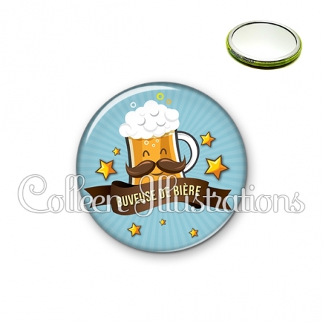 Miroir simple avec dos métallique décoré d'une image fantaisie et texte.