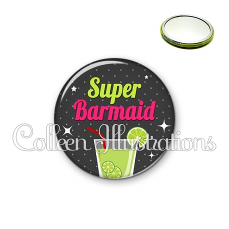 Miroir simple avec dos métallique décoré d'une image fantaisie et texte.