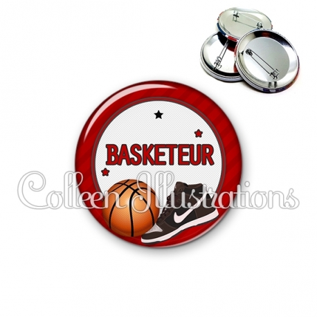 Image imprimée en haute résolution sur papier de qualité, protégée d'un film plastique, et sertie sur une coque et épingle métallique.