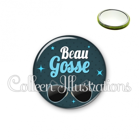 Miroir simple avec dos métallique décoré d'une image fantaisie et texte.