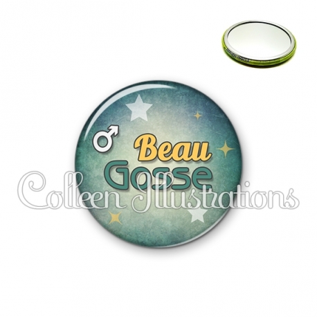 Miroir simple avec dos métallique décoré d'une image fantaisie et texte.