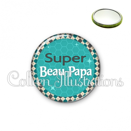 Miroir simple avec dos métallique décoré d'une image fantaisie et texte.