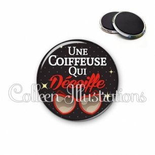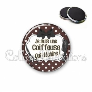 Magnet métallique avec image fantaisie et texte.