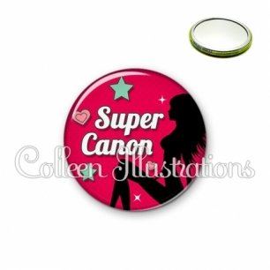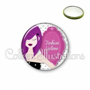 Miroir simple avec dos métallique décoré d'une image fantaisie et texte.