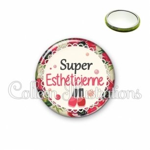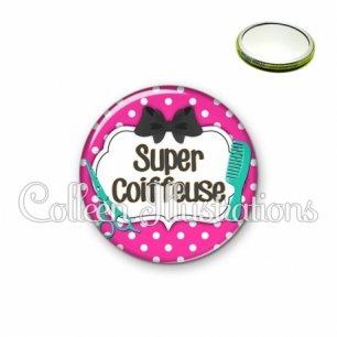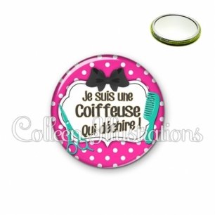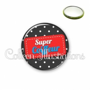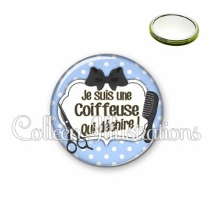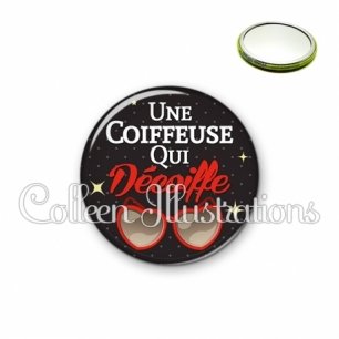 Miroir simple avec dos métallique décoré d'une image fantaisie et texte.