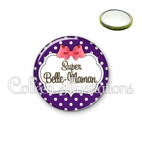 Miroir simple avec dos métallique décoré d'une image fantaisie et texte.