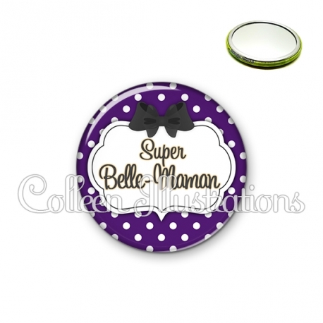 Miroir simple avec dos métallique décoré d'une image fantaisie et texte.