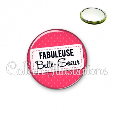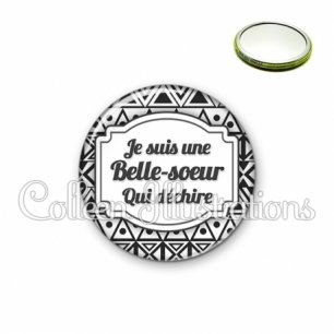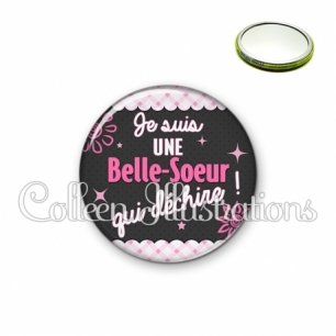 Miroir simple avec dos métallique décoré d'une image fantaisie et texte.