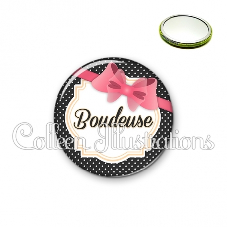 Miroir simple avec dos métallique décoré d'une image fantaisie et texte.