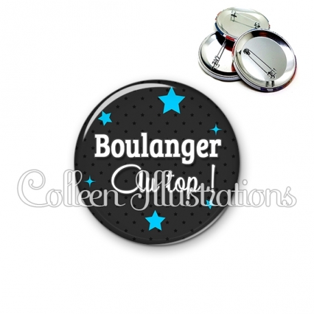 Image imprimée en haute résolution sur papier de qualité, protégée d'un film plastique, et sertie sur une coque et épingle métallique.
