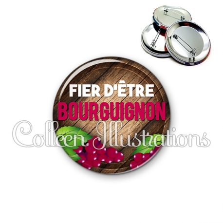 Image imprimée en haute résolution sur papier de qualité, protégée d'un film plastique, et sertie sur une coque et épingle métallique.