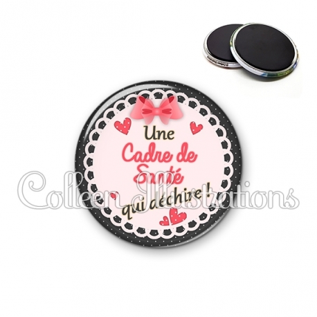 Image imprimée en haute résolution sur papier de qualité, protégée d'un film plastique, et sertie sur une coque métallique avec dos aimanté.